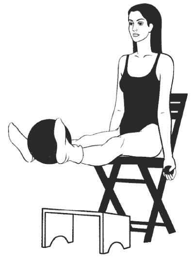 Если вам трудно выполнять упражнения с 7 по 12, то есть вы не можете удерживать ноги на весу, попробуйте выполнить эти же упражнения другим способом: сидя прямо, ноги выпрямлены перед собой и расположены на возвышении на уровне стула.