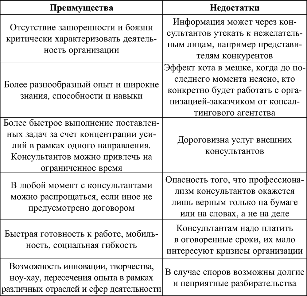 Преимущества и недостатки консалтинговой формы взаимодействия организации с институтом PR