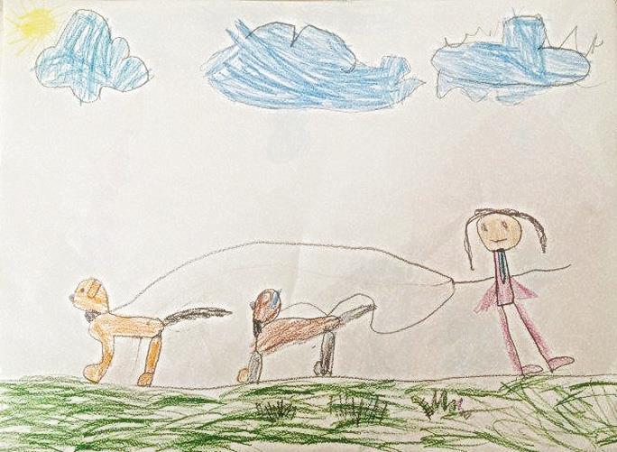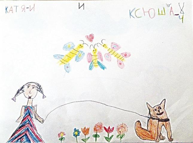 А Катя (вторая) и Ксюша (четвертая!) решили нарисовать собачке Тобику побольше потенциальных друзей: