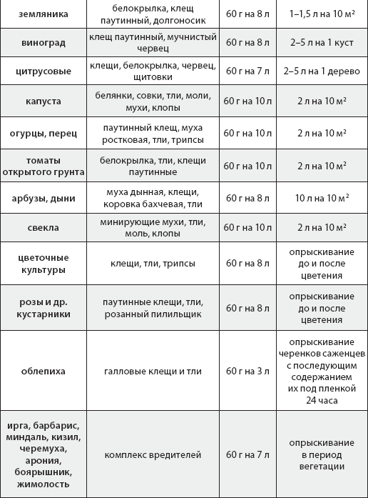 Способ применения: Для обработки 1 сотки 1 мл препарата развести в 5 л воды. Расход раствора 5 литров на 1 сотку. Насекомые после обработки перестают питаться и погибают в течение 1–2-х дней.