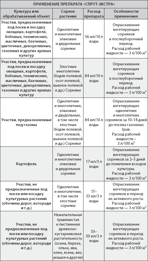 «Спрут-экстра»Эффективное средство против любых видов сорняков. Разрушает корневую систему сорных растений, эффективен при любых температурах, имеет долговременный эффект при единовременной обработке.