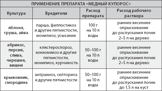 От болезней растений: «Хом», «Бордоская смесь», «Скор», «Топа з», коллоидная сера, медный купорос.