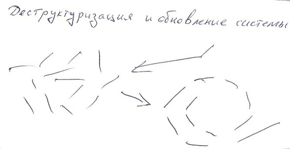 Мозг даёт вам сигнал: оптимальная форма проекта готова. Приступайте к разрушению предварительного варианта, существовавшего ранее. И тогда вы всё разом зачёркиваете и начинаете именно из обломков «старой» системы строить совершенно новый проект.