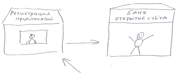 Десятый этап. И вот уже нужно регистрировать предприятие и открывать расчётный счёт в банке. Теперь это делать можно. Можно спокойно заниматься своим бизнесом. Всё теперь у вас получится».