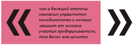 Самая большая проблема у предпринимателя при продаже бизнеса – его личная увлечённость проектом. Как же бизнес будет работать без него? Поэтому на более позднем этапе, когда бизнесу 3–4 года, постарайтесь потихоньку от него дистанцироваться. Нанимайте более профессиональных, толковых менеджеров, сотрудников. А сами занимайтесь только стратегией, маркетингом, продажами, ключевыми встречами с клиентами, наймом персонала. Может быть, получением первых дивидендов и первыми поездками в Сочи на неделю. А менеджмент должен заниматься управлением компанией. Чем в большей степени компания управляется менеджментом и меньше зависит от личного участия предпринимателя, тем более она ценится.