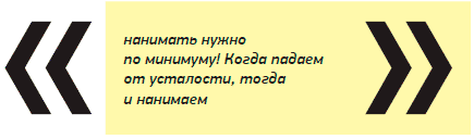 Вы спросите: как определить, что пора нанять нового сотрудника? Во всех моих бизнесах обычно происходило так. Если человек работает до 12 часов ночи, потому что он неэффективен и не в состоянии выполнить нужный объём до 7 вечера, нанимать нового сотрудника не нужно. Если человек работает до 12 ночи и после рабочего дня встаёт, падает и теряет сознание от изнеможения – похоже, пора ему в помощь нанять ещё одного.