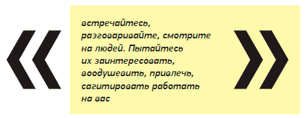 Вот вам пример самого богатого банка в мире. Встречайтесь, разговаривайте, смотрите на людей. Пытайтесь их заинтересовать, воодушевить, привлечь, сагитировать работать на вас. Эта трудная, нетривиальная задача, но она достойна великого предпринимателя-психолога.
