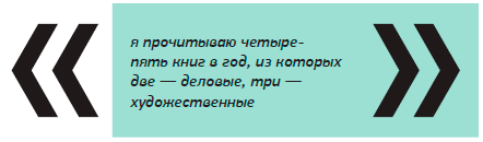 Также книги. Конечно, у бизнесменов времени мало, поэтому нужна жёсткая фильтрация. Я подхожу следующим образом: читаю 60 процентов художественной литературы и 40 процентов – деловой. Потому что реально трудно читать только про бизнес, когда он и так занимает 70 процентов моего личного информационного пространства. А человеку важно развиваться всесторонне, быть продвинутым.