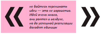 Расскажу о предпринимателях, создавших бренды, которые мне нравятся. А судя по успеху компаний, не только мне, но и миллионам клиентов. Каждый успешный бизнес может служить неисчерпаемым источником идей для вас, даже если вы планируете работать в совсем другой сфере. Не бойтесь перенимать идеи – это не воровство. Идей очень много, они роятся в воздухе, но до успешной реализации доходят единицы.