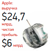 Потом он запустил iPod, iTunes, iPhone, iPad, расширил линейку компьютеров, и что мы видим? Сегодня Apple – самая дорогая компания мира, дороже Microsoft. В 2011 году рыночная капитализация (стоимость всех акций в обращении по биржевой цене) Apple превысила 300 миллиардов долларов. Компания растёт просто огромными темпами в последние годы. Во втором квартале 2011 года выручка составила 24,7 миллиарда долларов, а чистая прибыль – 6 миллиардов долларов. Оба показателя примерно вдвое больше, чем за аналогичный период 2010 года. Вдумайтесь в эти цифры!