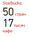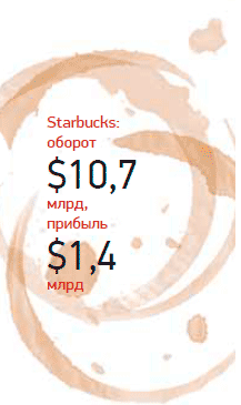 Starbucks. Я буквально заворожён технологиями и корпоративной культурой этой компании, имеющей свыше 17 тысяч кафе в 50 странах. Я посещал Starbucks в разных уголках мира, потому что там варят мой любимый кофе. Поражает единство стандартов. Научить людей с разными религиями, менталитетами, культурами одинаково быстро, качественно и с улыбкой подавать кофе своему клиенту – очень тяжело. Говард Шульц – великий предприниматель.