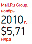 Компания Mail.Ru Group провела IPO на Лондонской фондовой бирже раньше «Яндекса». В ноябре 2010 года 16,8 процента акций компании были проданы по верхней границе диапазона с оценкой бизнеса в 5,71 миллиарда долларов.