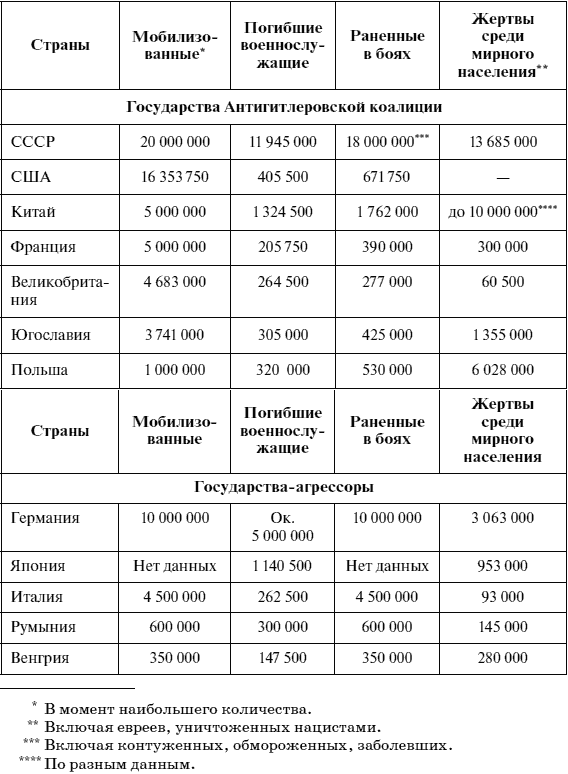 Потери во Второй мировой войне (данные по крупнейшим государствам)