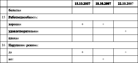 К субъективным показателям относятся: самочувствие, настроение, сон, аппетит, желание заниматься, переносимость нагрузки, потоотделение, боль в мышцах, режим дня и др.