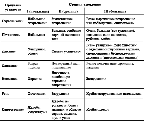 II–III степени утомления нежелательны, так как вызывают утомление организма. Необходимо прекратить тренировку и дать организму отдых для восстановления сил и работоспособности.