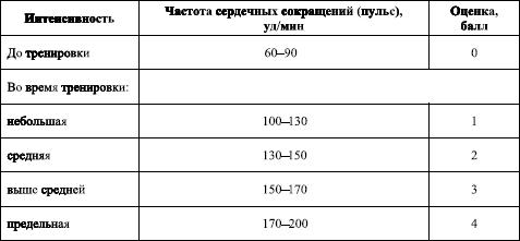 Интенсивность тренировочной нагрузки определяют по шкале (Сытник, Матвеева), приведенной ниже.