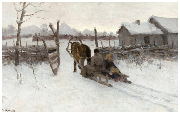 Двор с санями. Картина Тита Дворникова. 1900 г.