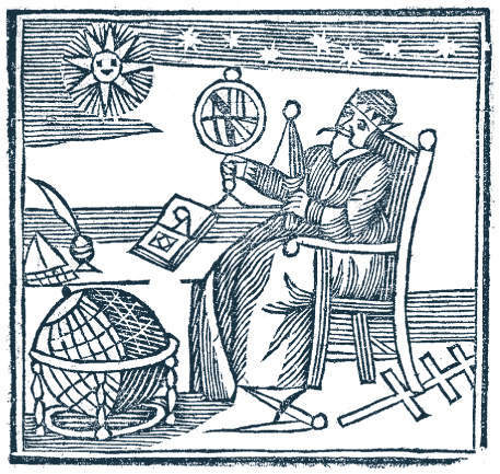 Астролог с набором инструментов. Гравюра на дереве Э. Патера, 1753 г.