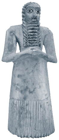 Шумерский жрец или правитель, совершающий ритуал. Статуэтка из алебастра, ок. 2900–2550 гг. до н. э. Найдена среди других подобных фигур в Телль-Асмаре (Ирак).
