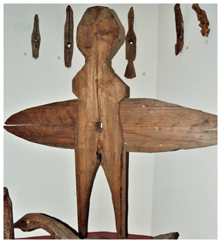 Ритуальные стружки, именуемые в этнографической литературе айнским термином «инау», широко применялись в обрядовой практике всех народов бассейна Нижнего Амура. Скорее всего, они попали туда от айнов острова Хоккайдо и Сахалина через нивхов. Инау представляют собой искусно заструженные палочки или длинные стружки, которыми обвязывают священные объекты, черепа животных, головы людей. Выдающийся российский этнограф Л. Я. Штернберг считал, что они выполняли роль посредников между людьми и духами. По объяснению одного из сахалинских айну, инау – это «толкующий человек, посол, оратор». Как и выдающиеся по красноречию люди, которые служили «послами и посредниками в делах мести, войны и мира», инау обладал способностью быстро и красноречиво передавать богам потребности человека. Слово «инау» Л. Я. Штернберг этимологизировал как «язык дерева», сопоставляя стружки с «языками оратора-посла» и сравнивая их с языками огня, «с шумным многоязычием его пламени»[25]25