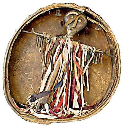 Алтайский бубен с одноголовой антропоморфной рукоятью.