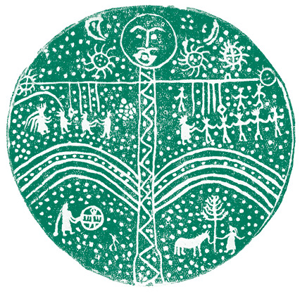 Ось мира в виде человека, рисунок на алтайском бубне.