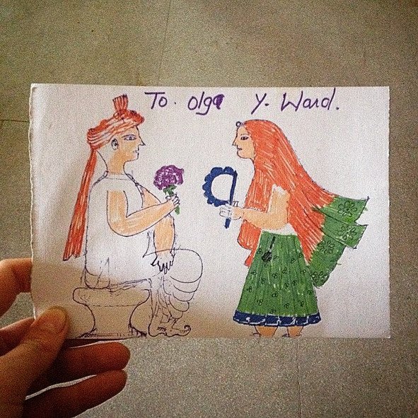 Фабьер проводил меня в больницу, пообещав подождать в старой палате. Врач коротко объявил, что теперь всё в порядке, и попросил сфотографироваться со мной, с первой за долгое время белой пациенткой. Фотосессия затянулась на полчаса, казалось, что даже хирурги, побросав больных, притягивали медсёстрам телефоны, чтобы те нажали на кнопку затвора. На прощание две молодых медсестры подарили мне рисунок, на котором была изображена семейная пара в национальных костюмах. На обратной стороне они подписали «Дорогой Ольге от любопытных жителей Биканера. Береги себя и счастливого путешествия!»