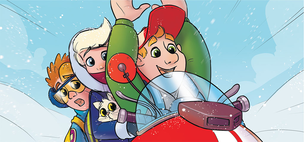 У Пети рулить получилось очень даже ничего. Правда, сначала снегоход ехал рывками, но потом набрал скорость и пошел ровно.