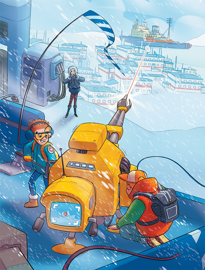 Мы с трудом выдернули снегоход из сугроба, и я на всякий случай огляделся в поисках новых изменений, но все вокруг казалось прежним: институт с блестящими стеклами окон, вокруг него – бесконечная снежная гладь. С одной стороны от него – теряющиеся в снежном мареве, виднелись жилые дома; с другой, на берегу, возвышался комплекс опреснительной и биологической станции; и далеко в море маячила плавучая атомная станция.