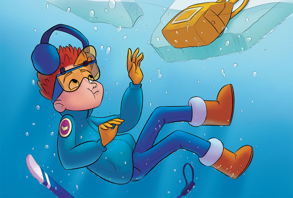 – Спасайтесь! Нас раздавит космический корабль! – заорал Петя и плюхнулся на лед, прикрыв голову.