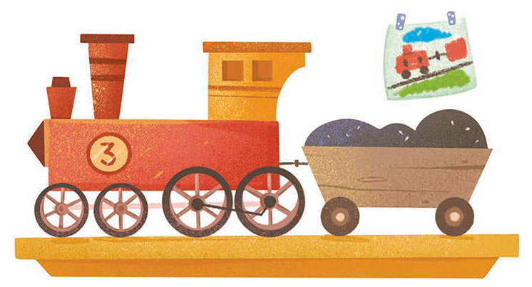 – Теперь у меня будет столько сил, чтобы играть, а не искать ботинки! – радовался По. – А когда я захочу играть с паровозом, то буду знать, что он ждёт меня здесь! – Он поставил паровоз на полку. – А друзья ждут на нашей любимой лужайке! Уже бегу!