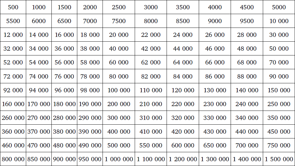 Упражнение «Порог комфорта»Предлагаю разобраться, какие суммы находятся в границах вашего комфорта – будь то месячный заработок, подарок в виде денег или почасовая оплата услуг, – а какие из них выпадают.