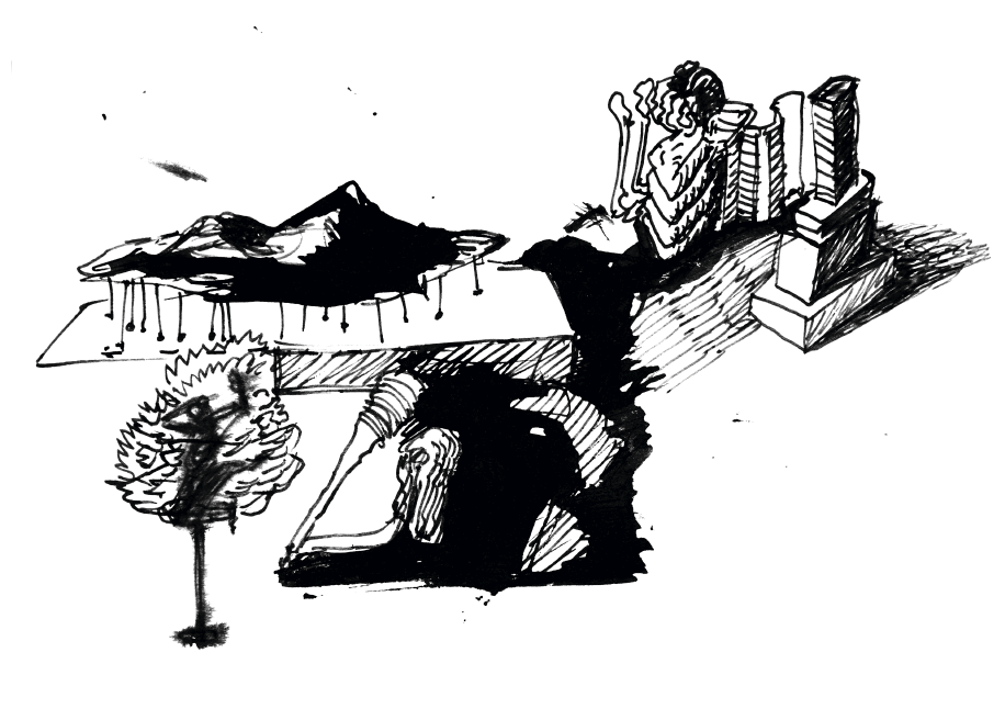 Кристина сидела на турнике рядом с Юлей, внизу стояли Дима и Жорик. Жорик курил тонкие сижки, Дима смотрел на гору. Все молчали. Юля тихо заплакала, и Кристина положила руку ей на плечи.