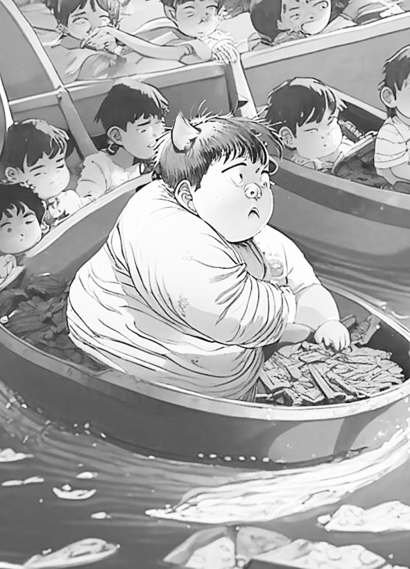– Плыть по обычной реке не слишком увлекательно, не так ли? – подмигнул глазом помощник Даймона и высыпал в реку какао-порошок из мятой, тёмно-красной коробки.