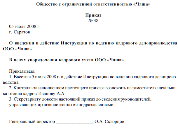 Инструкцию вводят в действие приказом работодателя (см. приложение 3 к данной главе).