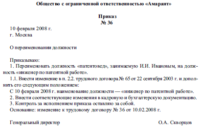 Изменения в штатное расписание вносятся в соответствии с приказом (распоряжением) руководителя организации или уполномоченного им на это лица.
