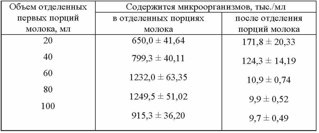 Значение сдаивания первых струек молока в плане улучшения санитарно-гигиенических показателей изучено СИ. Плященко и др. (1993). В результате исследований установлено, что при привязном содержании коров и доении их в переносные ведра самое низкое содержание микроорганизмов в молоке наблюдалось при удалении первых 60-80 мл молока (табл. 2.9).