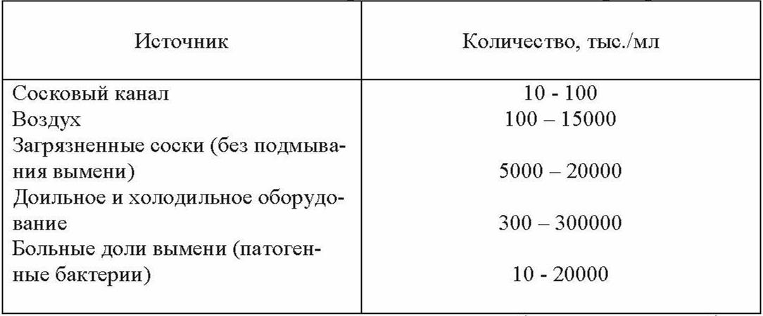 Молоко в здоровом вымени не содержит бактерий, микрофлора попадает в него при доении, транспортировке и других операциях из внешней среды, а также с оборудования (табл. 2.8).