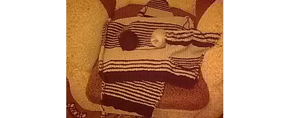 (По свитеру пошла чёрная полоса… К счастью, узенькая, всего в два ряда.)