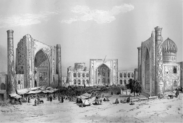 Рис. 14. Ригистан, главная площадь в Самарканде (из альбома «Виды Русского Туркестана по рисункам с натуры Ольги Александровны Федченко»)