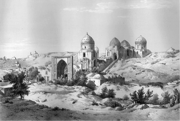 Рис. 15. Шах Зинда в окрестностях Самарканда (из альбома «Виды Русского Туркестана по рисункам с натуры Ольги Александровны Федченко»)