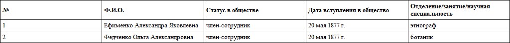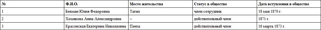 Таблица 7. Женщины – члены Императорского Русского географического общества (70-е гг. XIX в.)