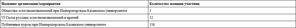 В 70-е годы (в период с 1870 по 1873 год) Общество естествоиспытателей при Казанском университете приняло в свои ряды трех женщин (таблица 5)963963