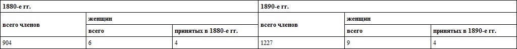 Принятие женщин в члены Русского географического общества в 80–90-е годы XIX века также не было массовым (таблица 12)10241024