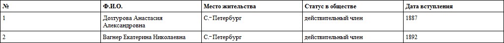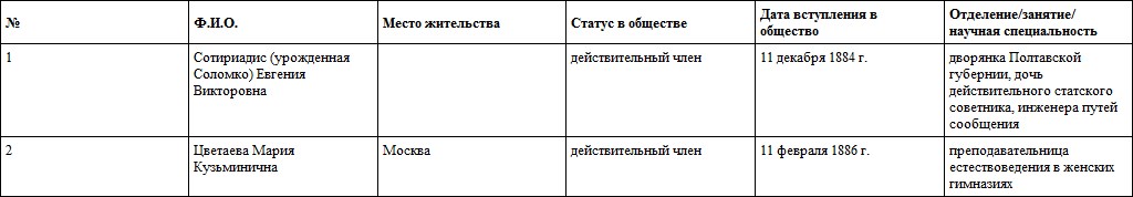 Таблица 14. Женщины – члены Императорского С.‐Петербургского минералогического общества (80-е гг. XIX в.)