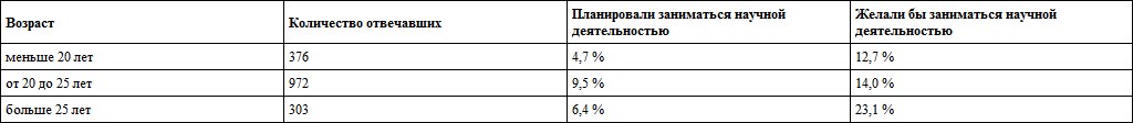 Таблица 10. Возраст слушательниц С.‐Петербургских Высших женских курсов, отвечавших на вопросы о планируемой и желаемой в будущем деятельности
