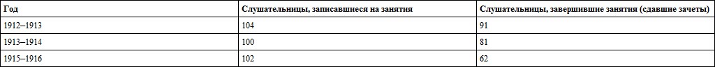 [Закрыть]. При этом количество студенток, с которыми предполагалось работать, составляло на момент написания записки, по подсчетам А. Б. Миссуны около ста человек в год (таблица 11)12401240