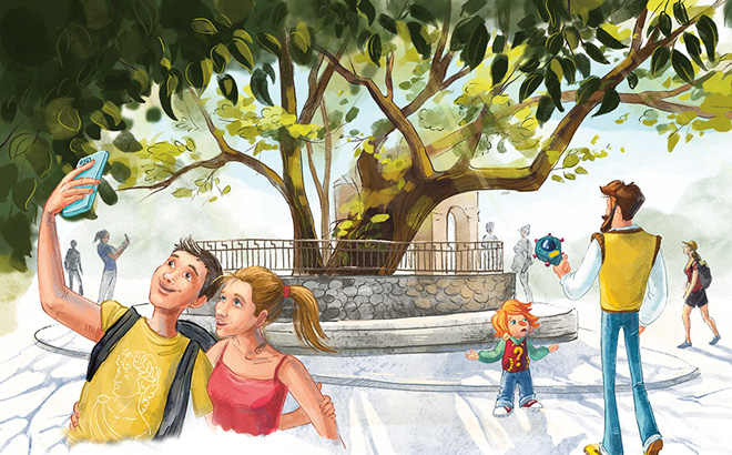 – Почему мы попали на городскую площадь с большущим деревом посредине? И вместо древних греков современные туристы, фотографируются около дерева. Может, времяскок испортился?