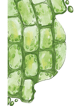 – Это хлоропласты – настоящие фабрики по производству сахара. В клетках растений их много, по несколько десятков. Хлоропласт имеет такой цвет, потому что содержит зелёный пигмент, хлорофилл. Именно он придаёт зелёный цвет листьям.