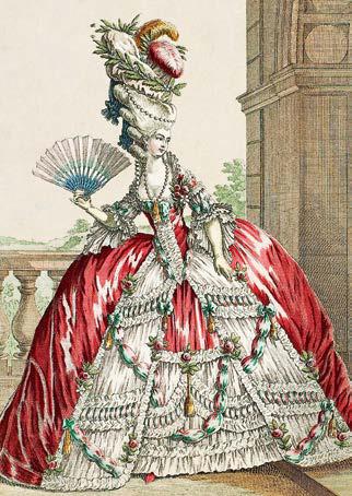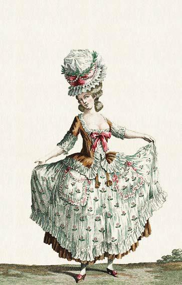 Гигантские прически, которые наконец достигли такой высоты, что о модной даме говорили, что ее лицо находится посередине тела, больше не встречались. Теперь густые локоны свисали до талии, но дамы продолжали использовать ленты, кружева, цветы, перья, эгретки и т. п. Чтобы компенсировать потери, все эти великолепные атрибуты были перенесены на шляпы, которые по размеру и отделке сравнялись по экстравагантности с прежними прическами. Чем проще становилось платье, тем причудливее – головной убор.